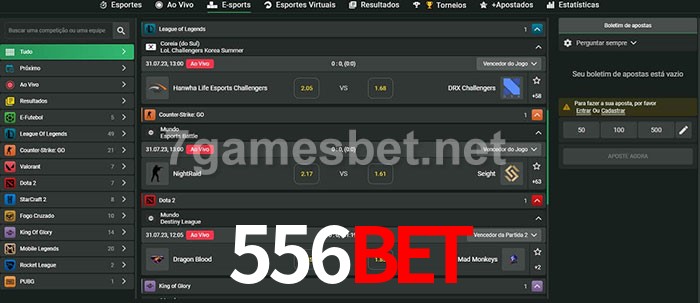 O 556bet oferece uma grande seleção de opções de apostas em e-sports com probabilidades competitivas